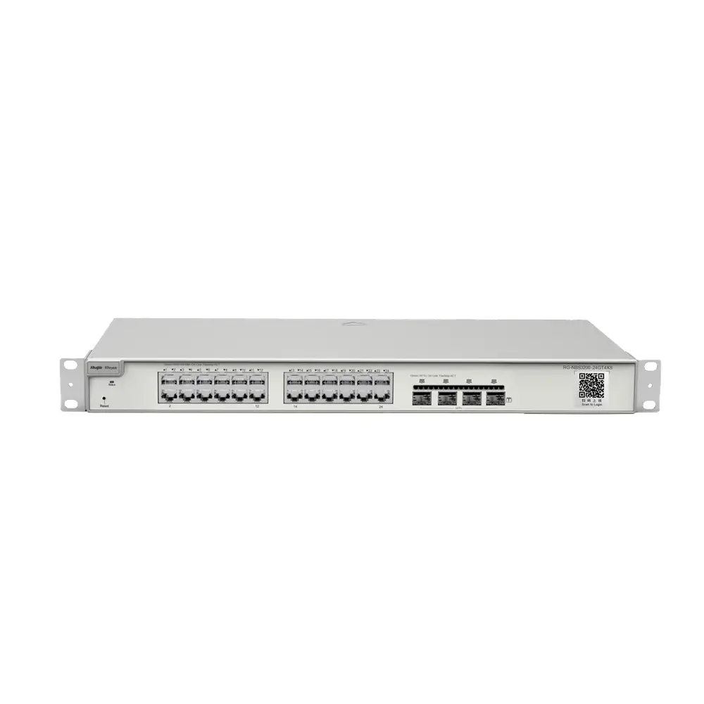 Switch gestionável de Camada 2+ concebido para redes empresariais modernas, equipado com 24 portas Gigabit RJ45 ((10/100/1000 Mbps) para ligar utilizadores, câmaras IP, APs Wi-Fi ou dispositivos IoT, e 4 portas SFP+ de 10 Gbps como uplinks para o core ou servidores, com capacidade de comutação de 128 Gbps e taxa de encaminhamento de 96 Mpps..