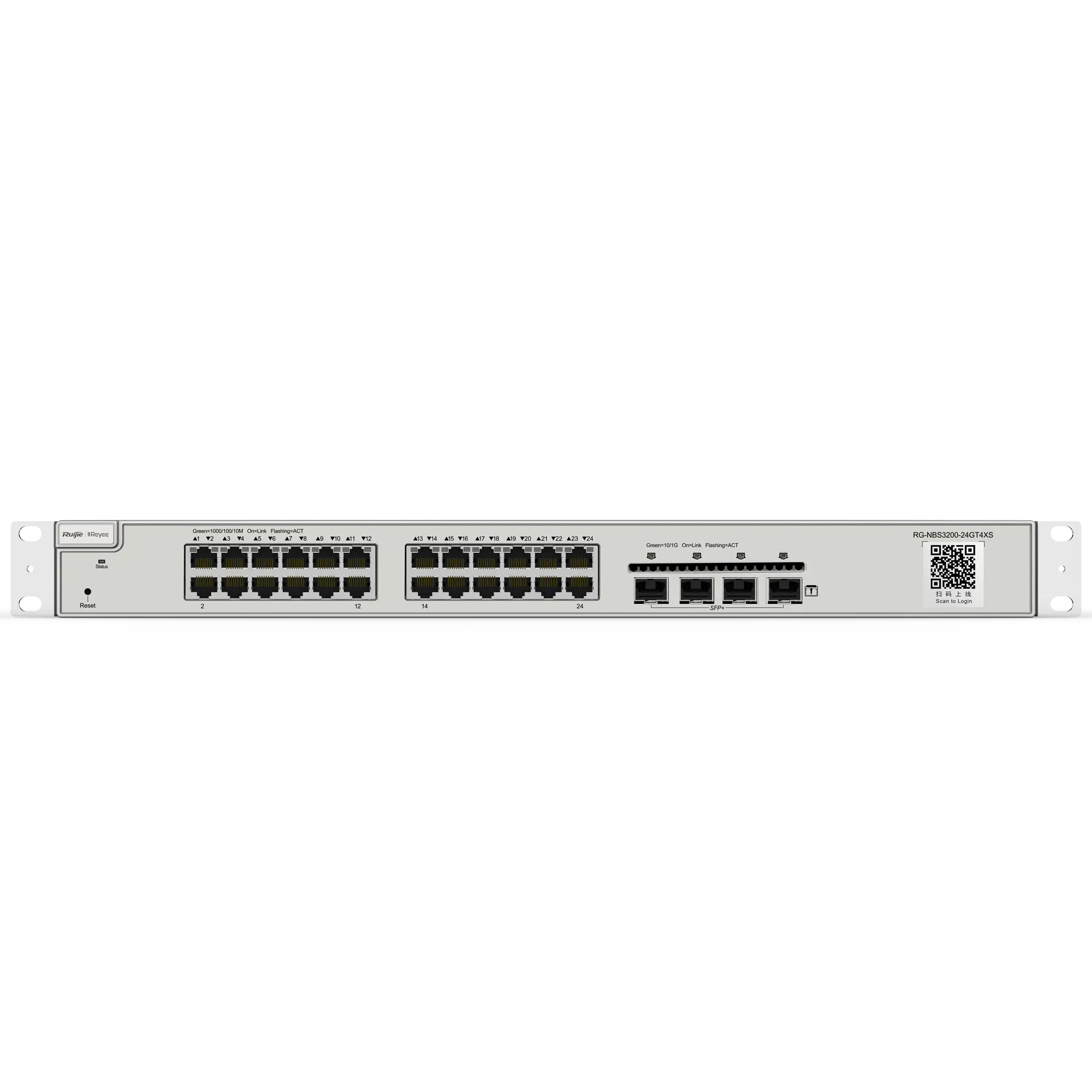 24 portas RJ45 10/100/1000 Mbps + 4 Portas SFP+ 10 Gbps